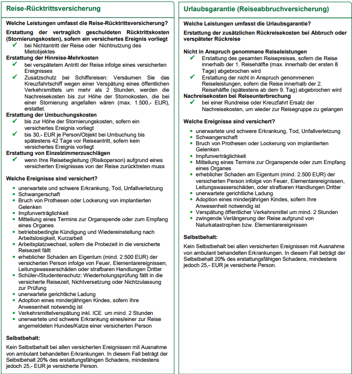 Die Verträge gestalten sich so, dass Sie schauen, für welchen Maximalbetrag pro Reise Sie Absicherung benötigen.